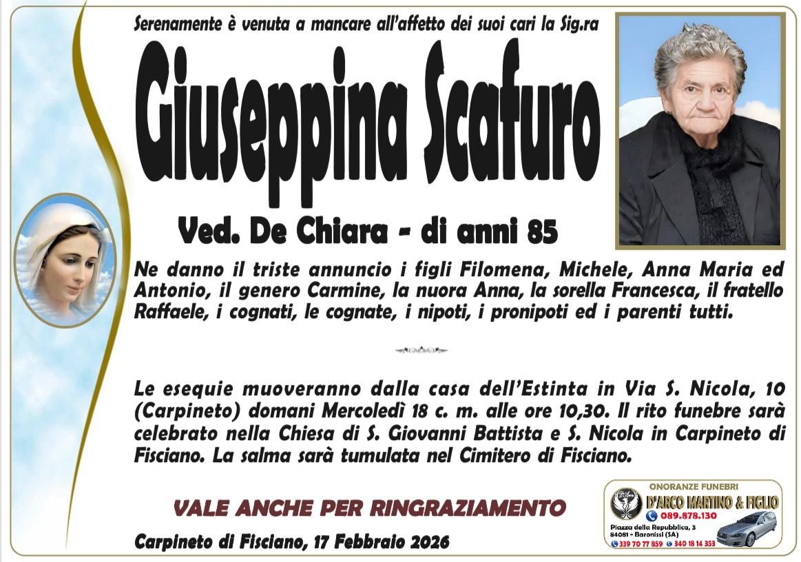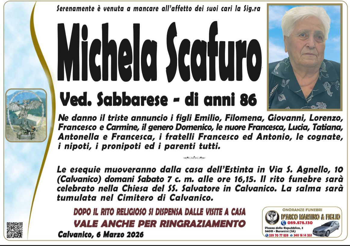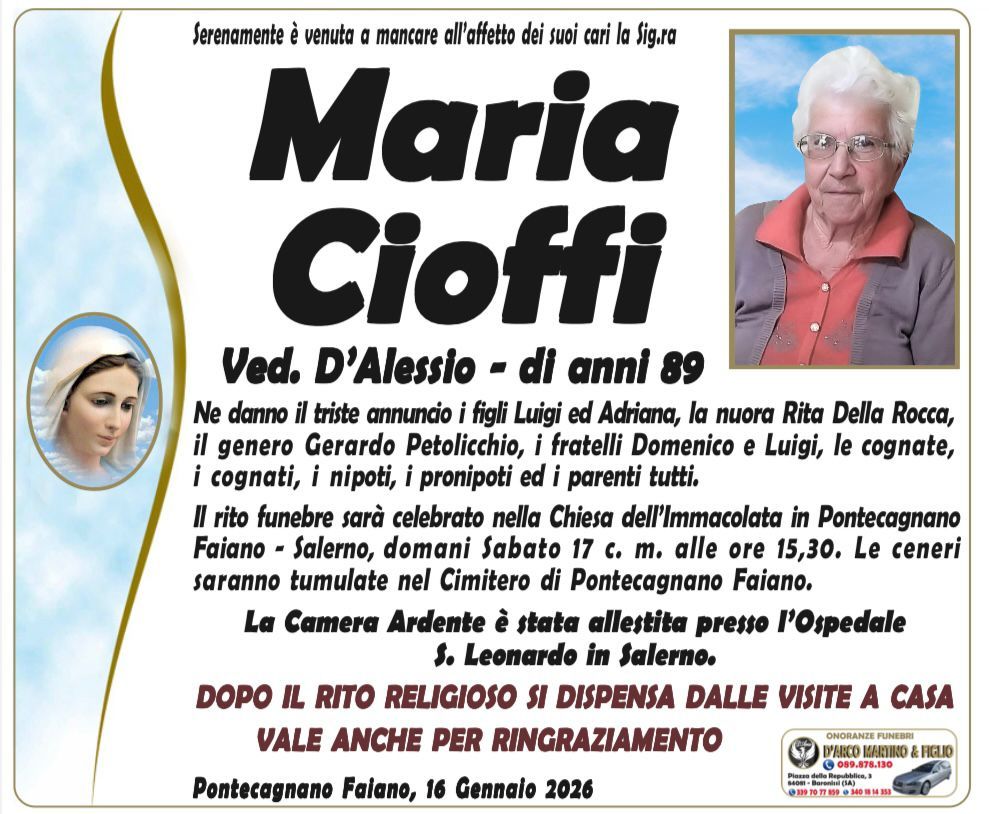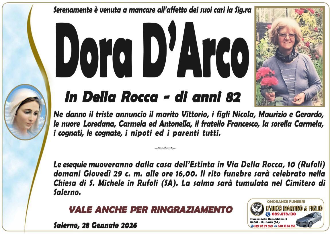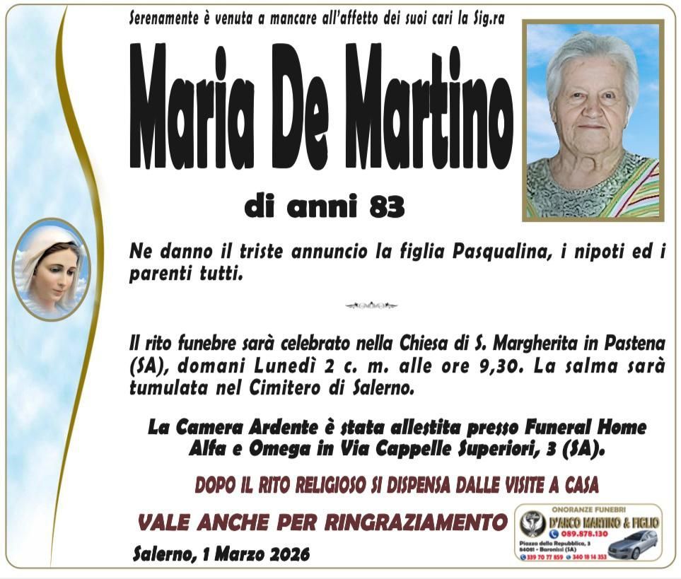 Onoranze Funebri D'Arco Martino mette a disposizione questo spazio web, per permettere a tutti di lasciare un messaggio di condoglianze alla famiglia del defunto. I messaggi verranno da noi raccolti e consegnati ai familiari ed amici.