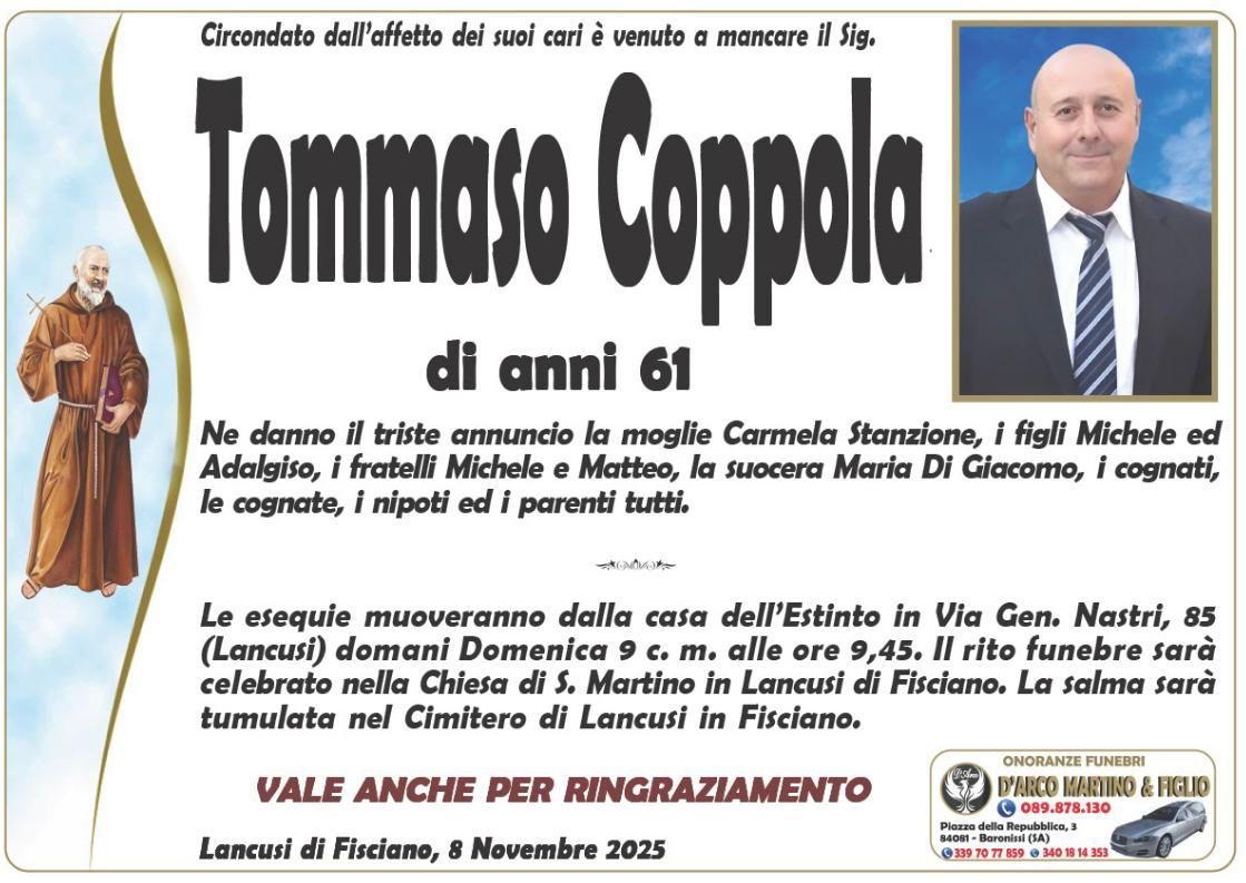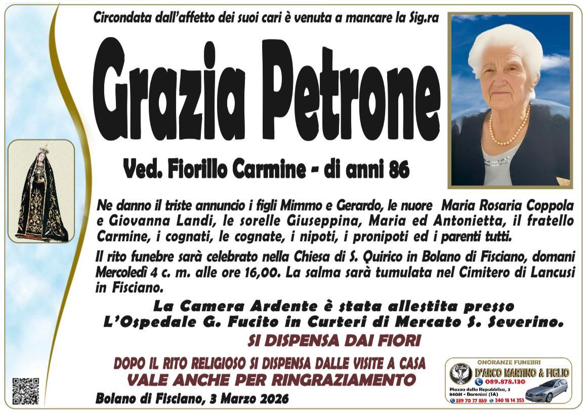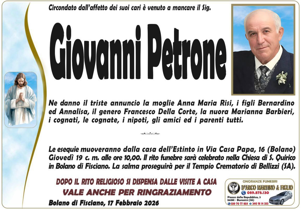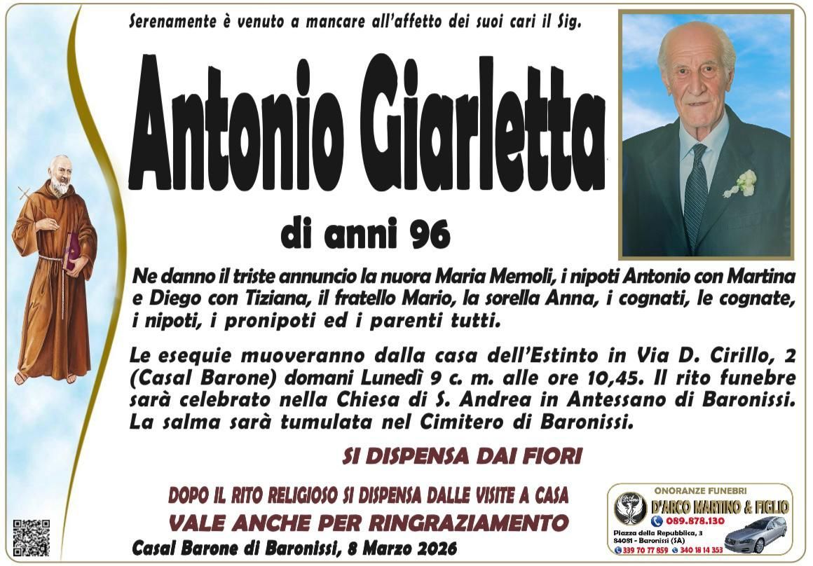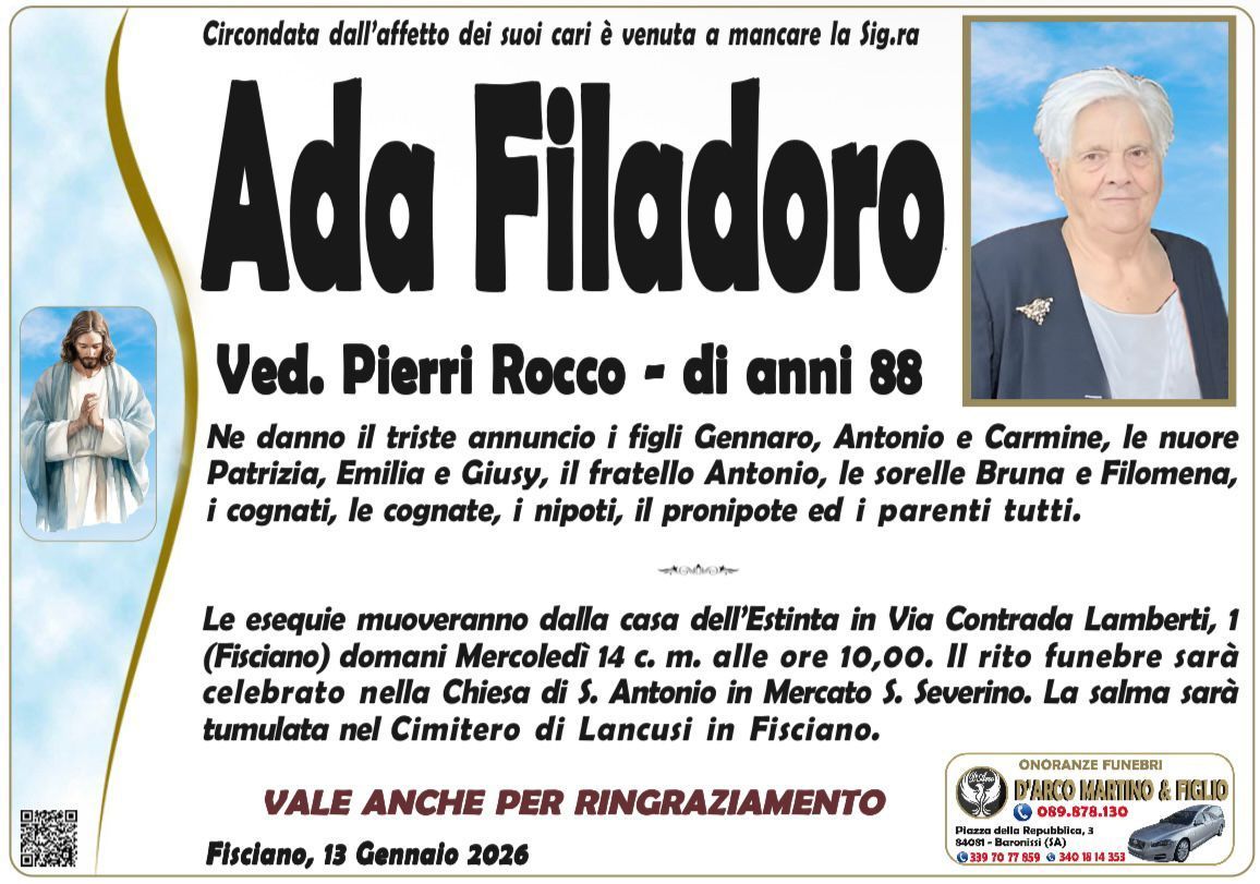 Onoranze Funebri D'Arco Martino mette a disposizione questo spazio web, per permettere a tutti di lasciare un messaggio di condoglianze alla famiglia del defunto. I messaggi verranno da noi raccolti e consegnati ai familiari ed amici.